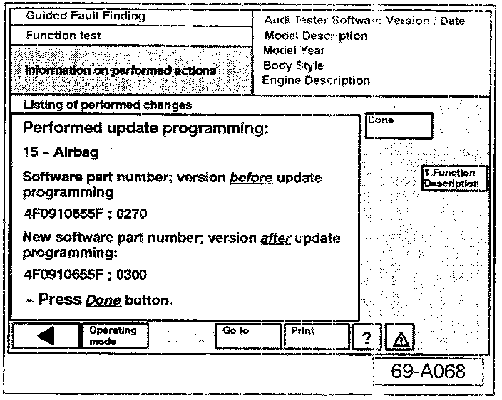 - Update software for airbag control module Part No: 4F0 910 655F, SW level 260/270 to SW level 300 using Software Version Management (SVM) (Refer to Technical Bulletin number 01-06-06 for SVM instructions)