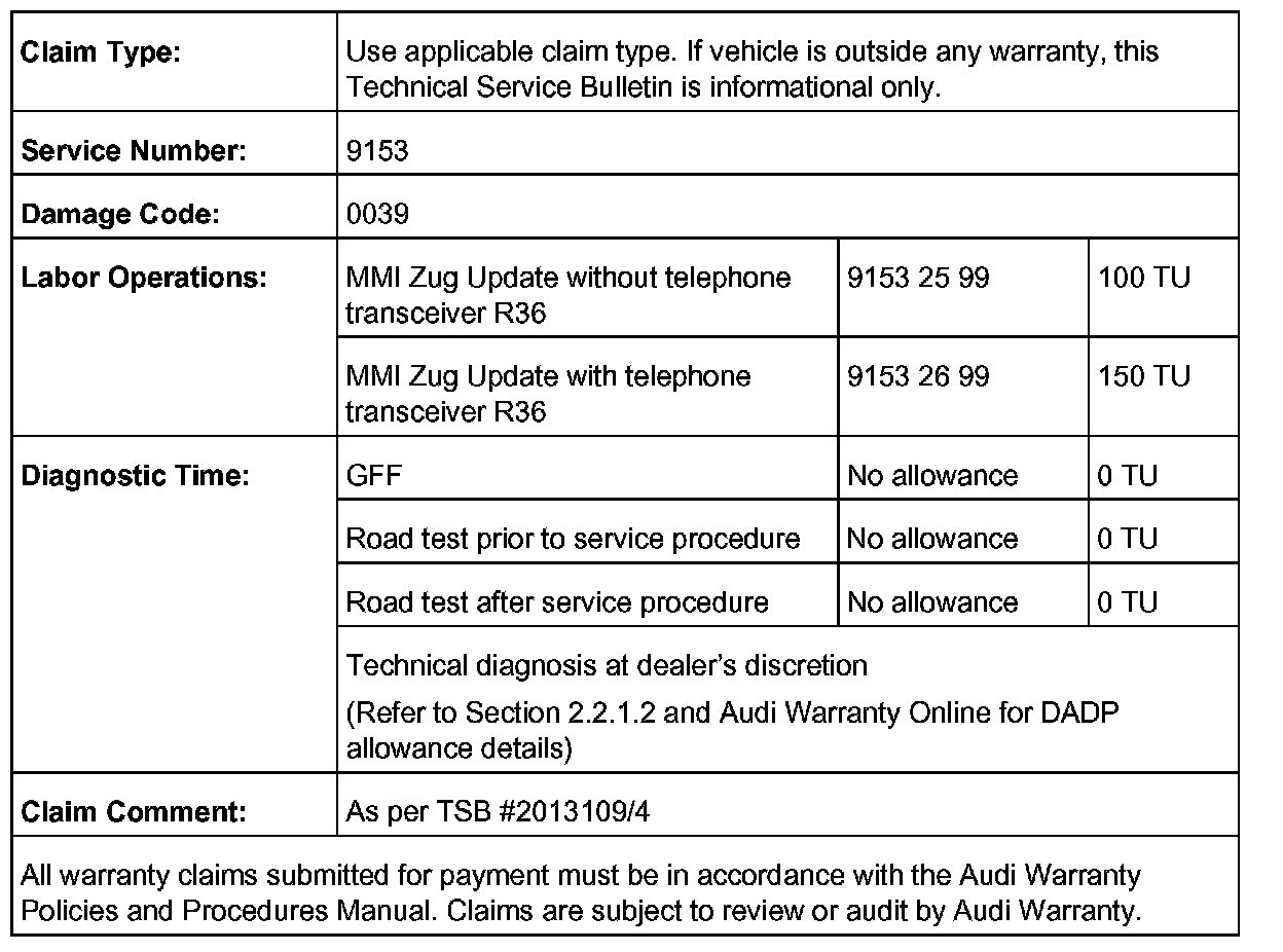 - TSB 2019334, 91 MMI High System software update (Zug 864 - update) procedure