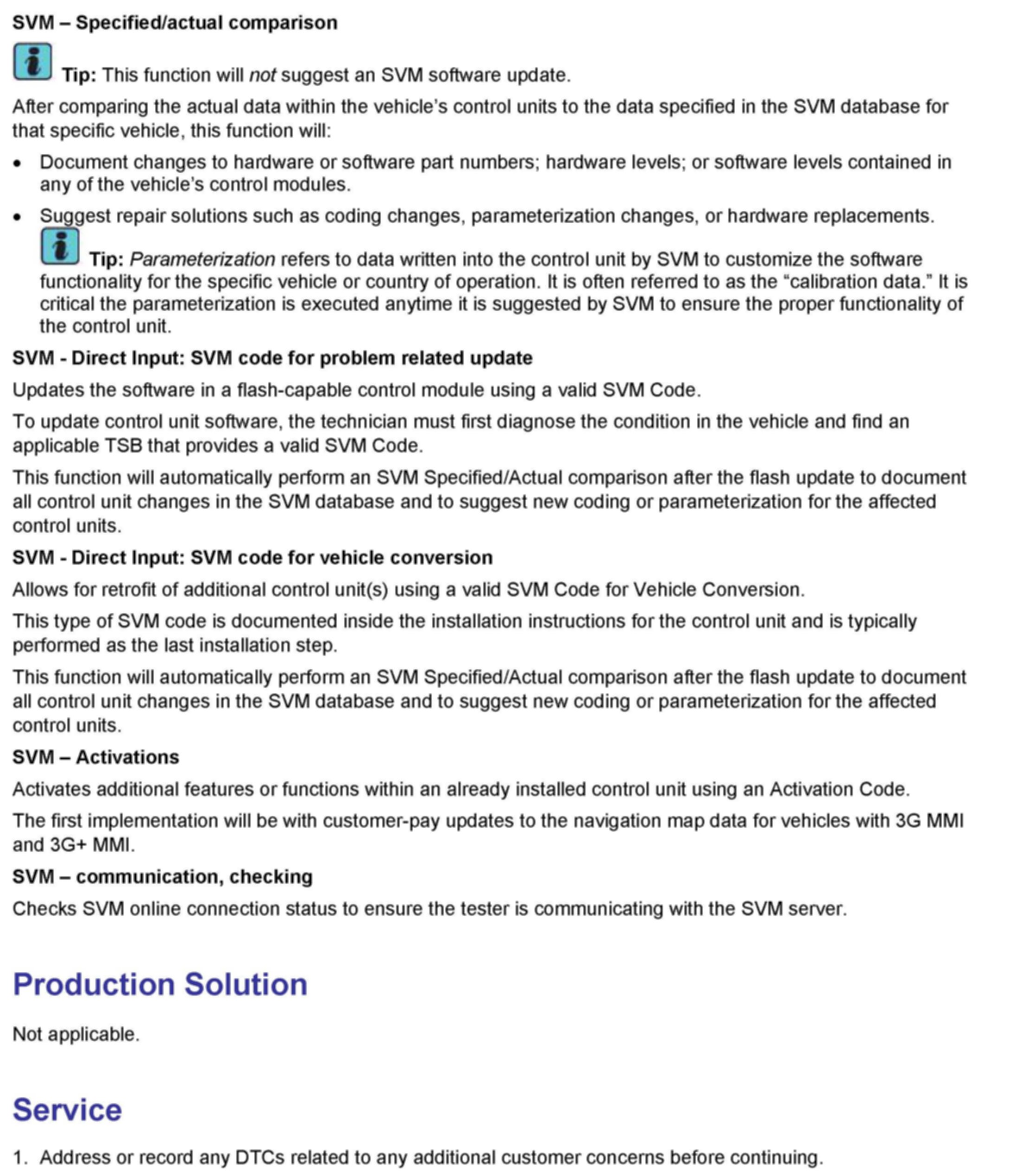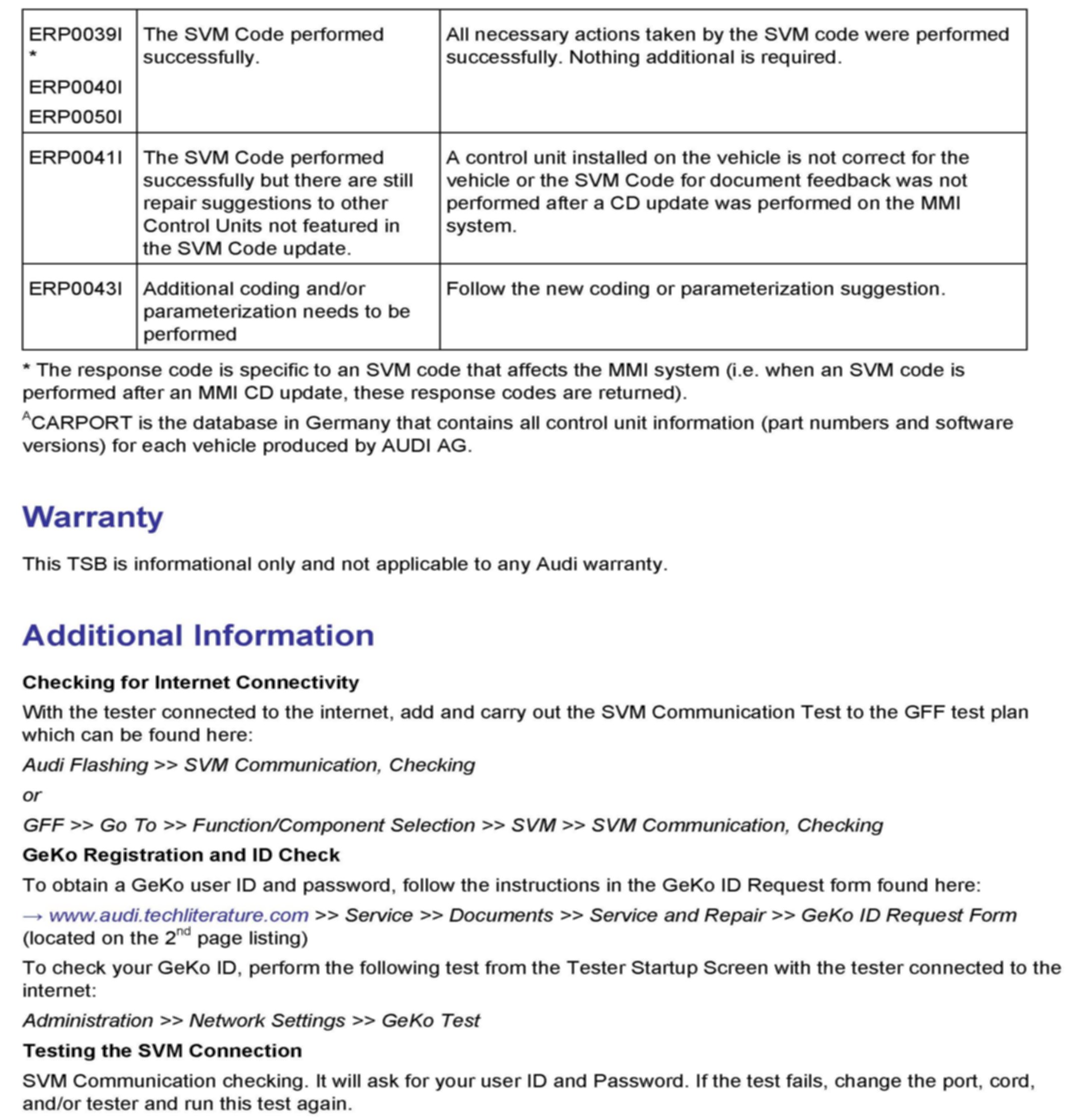 2. Follow all instructions in the attached TSB 2011732 00 Software Version Management (SVM), operating instructions.