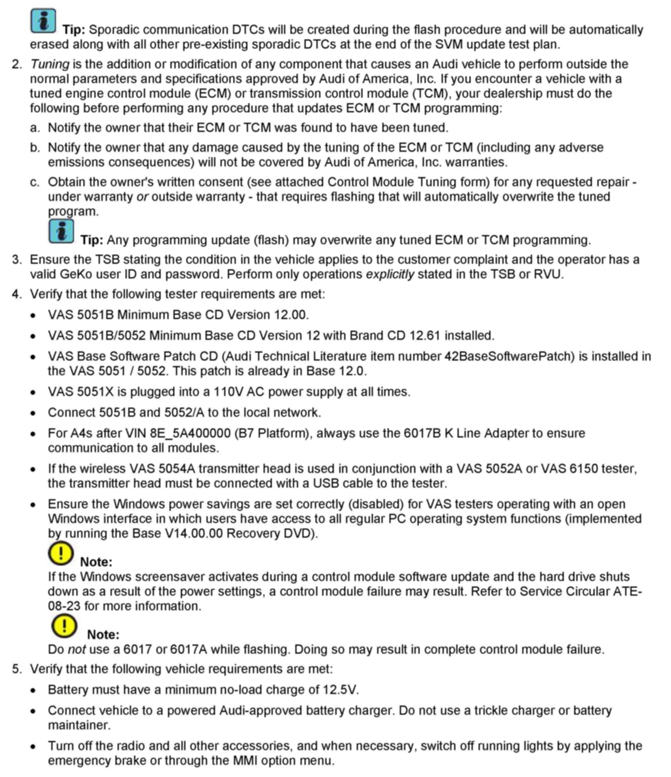 The program may loop back for additional updates to other control modules. Update only software for valid customer concern as outlined in the Technical Service Bulletin in which the Action Code was printed. Warranty does not cover time expended on updating (flashing) modules not explicitly stated in the bulletin.