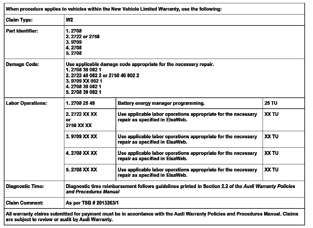 A8: software version at least 0510. Note: 2004 A8 models and A8 models with BEM software versions 0270 or lower are not affected.