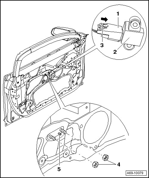 - Remove door trim. Refer to => [ Front Door Trim ] Front Door Trim.