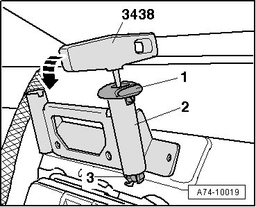 - Guide (3438) into hole in headrest - 1 - and engage at retaining tab - 3 -.
