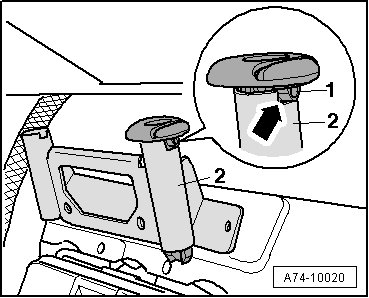 • Guide lug - 1 - of headrest guide must engage in cut-out - arrow - of mount - 2 - for headrest guide.