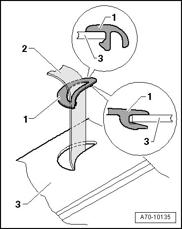 - Remove belt guide - 1 - from rear shelf - 3 -.
