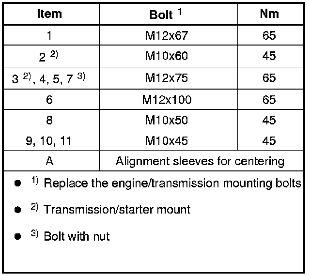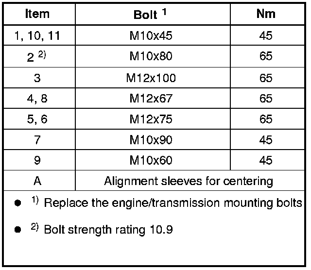 3.2L Torque specification, securing engine/transmission (transmission flange pattern)