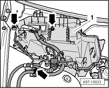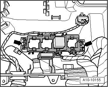 - Release clips - arrows - and remove main fuse panel - 1 - from E-Box right plenum chamber.