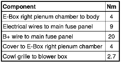 - When attaching cover for E-Box right plenum chamber, make sure cover is engaged correctly in mounts and no electrical wires are jammed.