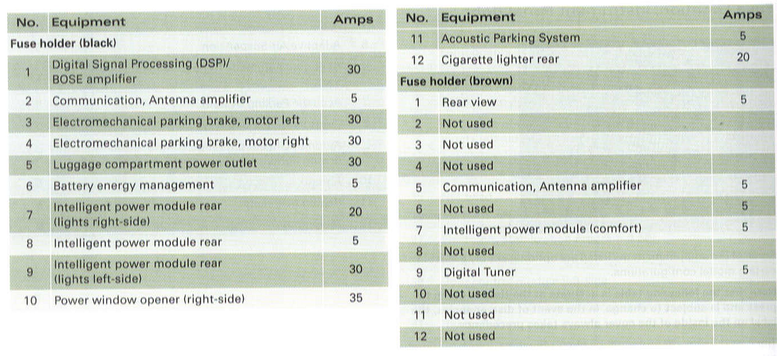 Fuse layout (luggage compartment right)