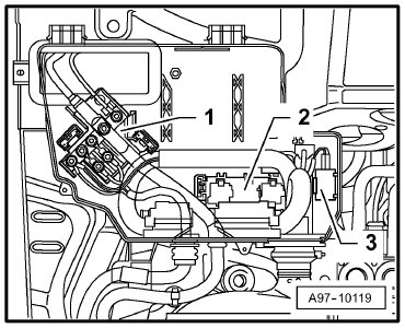 • The suppressor -C24- is connected between ground and connection 1 on main fuse carrier.