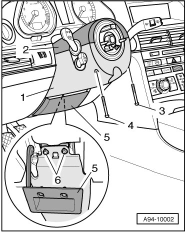 - Disconnect upper trim - 2 - for steering column switch from lower trim - 1 - and remove both sections.