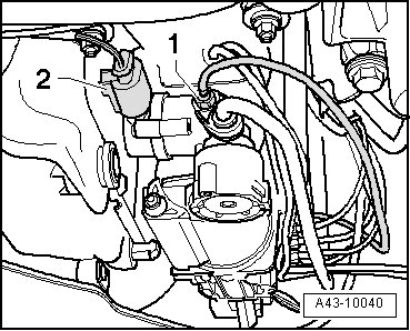 - Disconnect the electrical connector on the level control system solenoid and remove the threaded connections - 1 -.