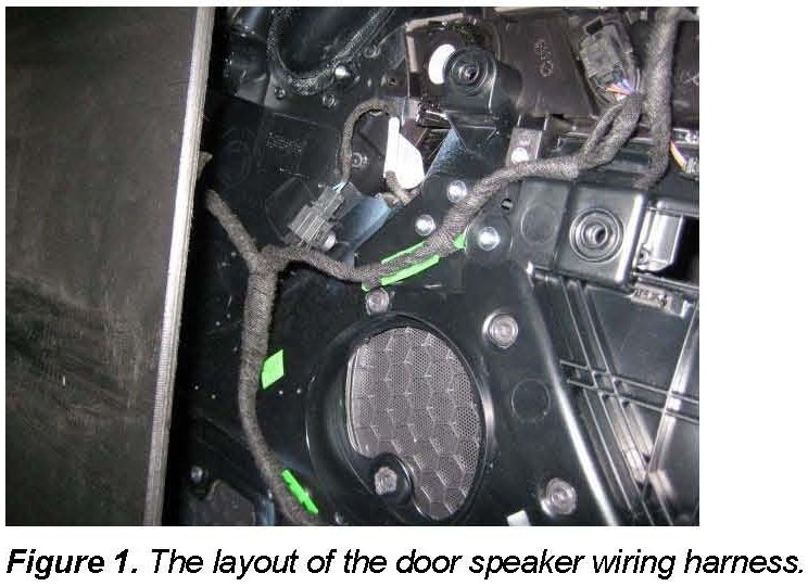 Rework and secure the layout of door speaker wiring harness (Figure 1).