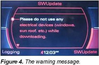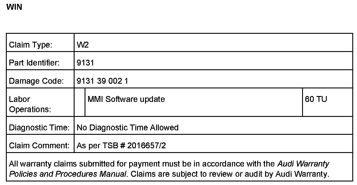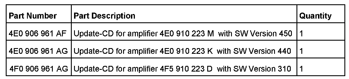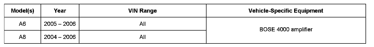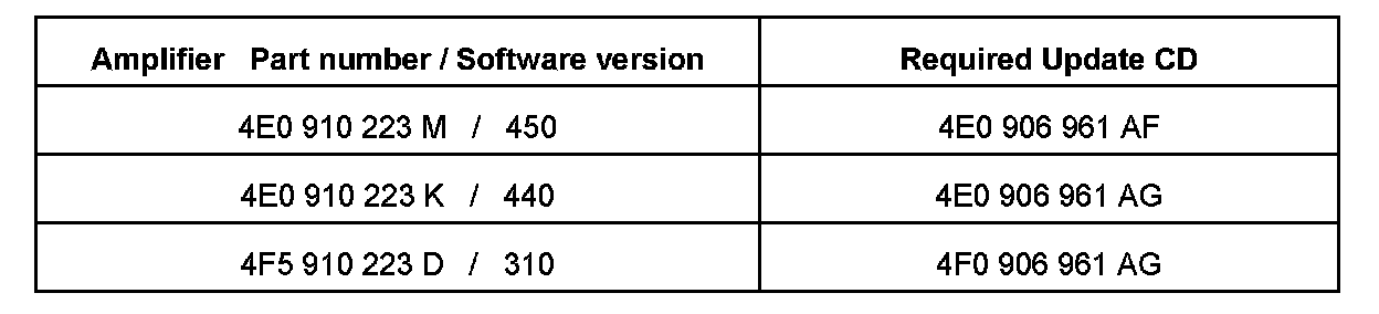 - Screeching sound, after opening the vehicle door (MMI system awakes). After disconnecting the amplifier or a few minutes of driving (warming up), the audio returns and functions normally. The MMI menu is displayed and working properly all the time.