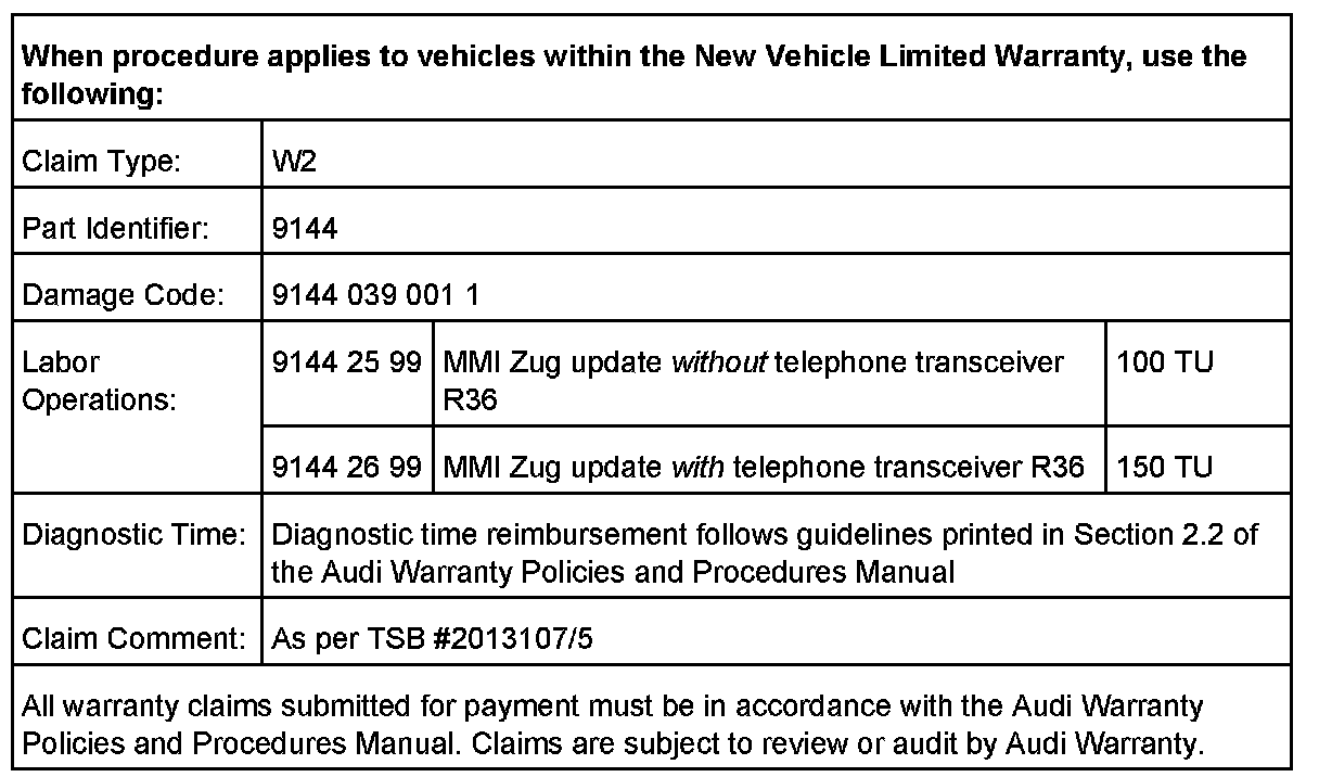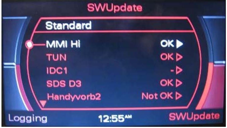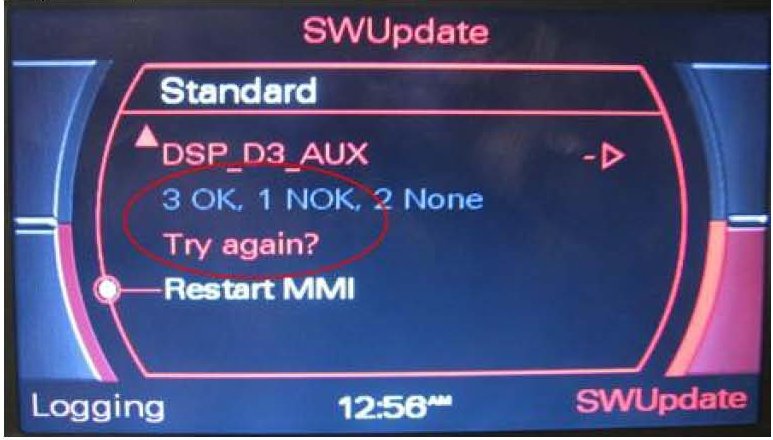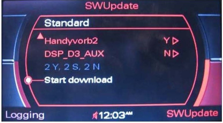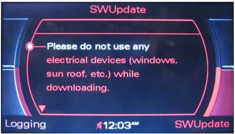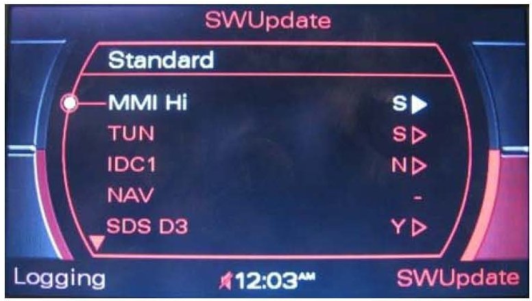3. All sound settings will be set to default after the update. Depending on the installed MMI components, further settings (Previous/Memory station list, stored CD name, directory entries and voice recognition name tags) may be lost.