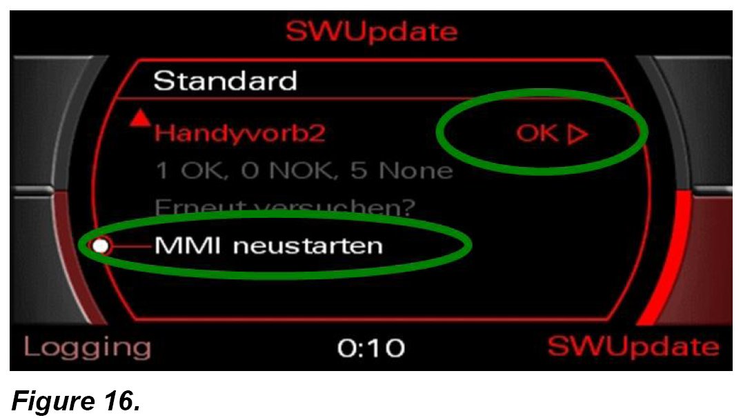 6. Complete the update procedure by scrolling down and selecting Restart MMI.