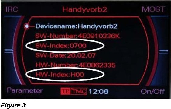 - If HW-Index: H16 and SW-Index: 0700 is displayed in the vehicle, continue with the software updates of the MMI control units.