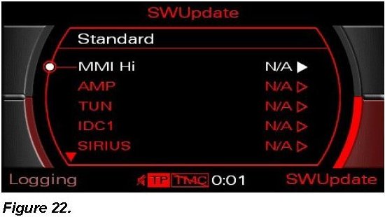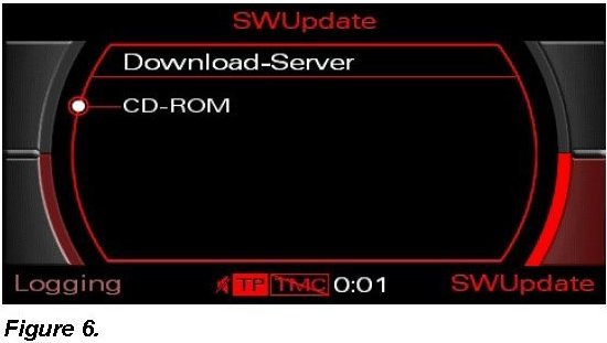 4. Perform interim software update of the remaining MMI components using Update CD 4F0 906 961 AB.