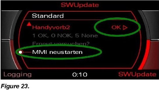 6. Complete the update procedure by scrolling down and selecting Restart MMI.