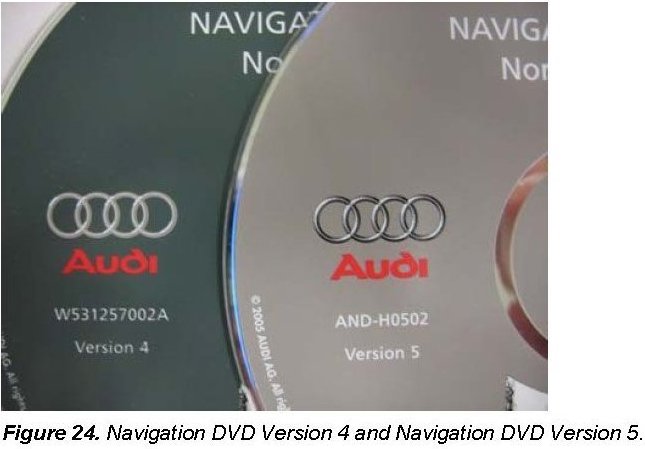 1. If the vehicle is MY 2005, it may still have a Version 4 Navigation DVD installed. Replace Version 4 Navigation DVDs with a Version 5 Navigation DVD prior to the MMI component Update.