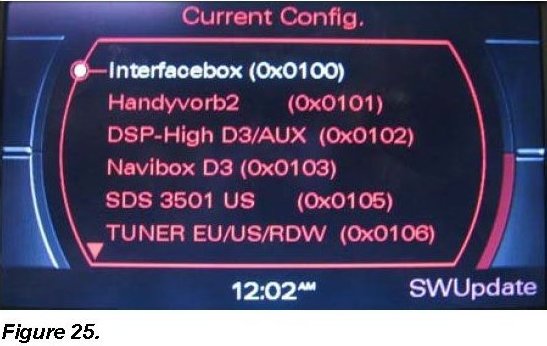4. Return to the Current config. screen and insert Update CD 4F0 906 961 AB in the single CD drive or in the first slot of the vehicle's CD changer (position 1).