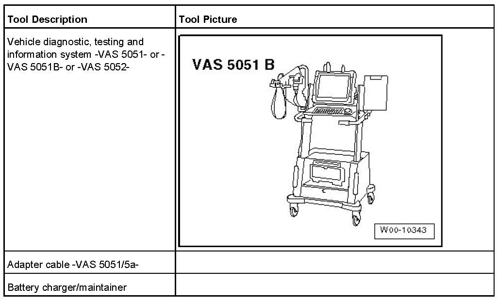 1. Connect vehicle diagnostic, testing and information system -VAS 5051- or -VAS 5051B- or -VAS 5052- (with online capability) to the vehicle.