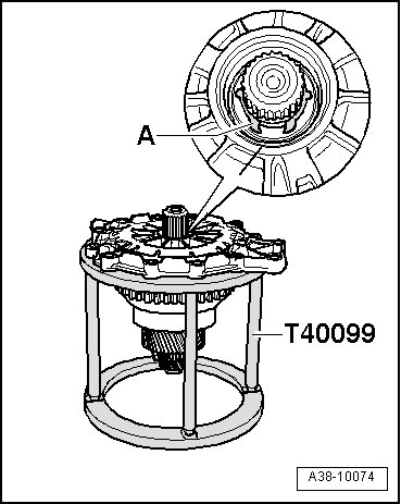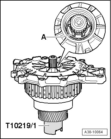 - With hydraulic press, press input shaft cover - A - with tube 37 mm dia. (VW 416 B) onto input shaft up to stop.
