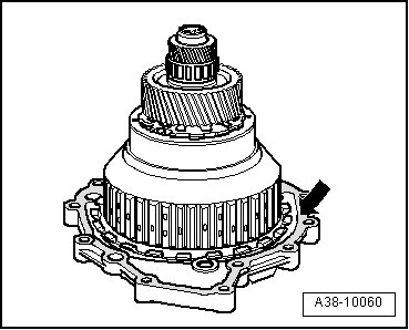 Oil pipe must engage noticeably, rotor blades - arrow A - on oil pipe must lie completely in input shaft.