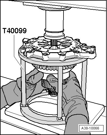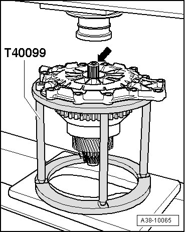 - Place input shaft together with (T40099) on hydraulic press thrust plate.