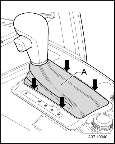 - Unclip mounting frame for selector lever boot - 1 - from center console and lift it upward and off - arrows -.