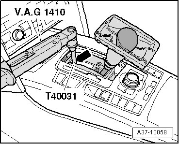 - Loosen selector lever cable clamping bolt approximately 1 turn using Socket (T40031).