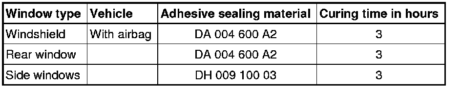 For safety reasons, use only electrically non-conductive 2K-adhesive when installing windshield and rear window using the materials listed below.