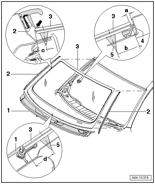 Removing and installing, refer to => [ Windshield, Removing and Installing ] Windshield, Removing and Installing.