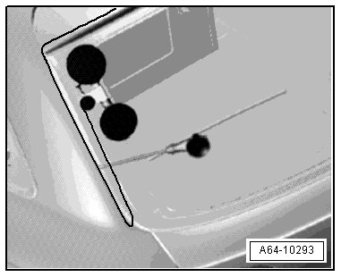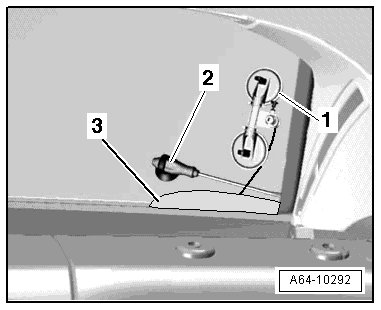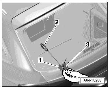 - Tension the cutting wire using the spool - 1 - and insert the plastic film - 2 - taken from the cutting tool kit (VAS 6452) to protect the wire and the instrument panel.