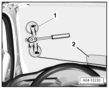 - If necessary, move the protective foil - 3 - along with the wire and cut the windshield free with the spool - 1 -.