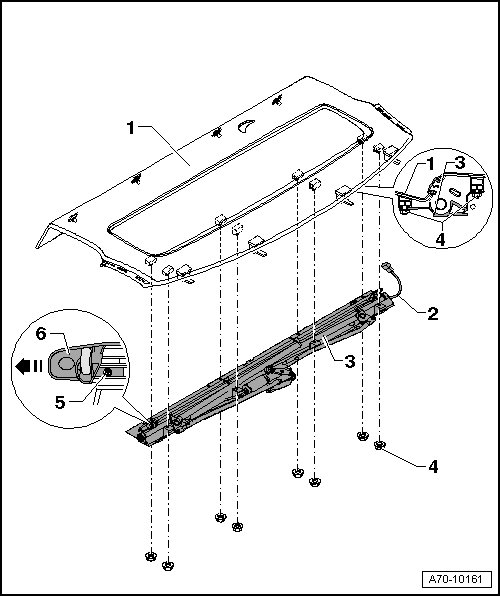 - Remove sun shade - 3 - from rear shelf - 1 -.
