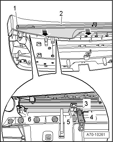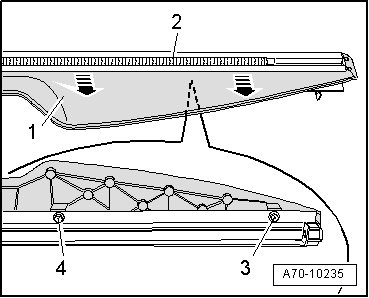 - Pull sun shade - 2 - out of lower trim in - direction of arrow -.