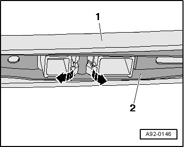 - Release clips - arrows - using a screwdriver and pull wiper blade - 2 - out of wiper arm - 1 -.