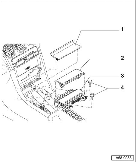 - Remove two bolts - 4 - from ashtray.
