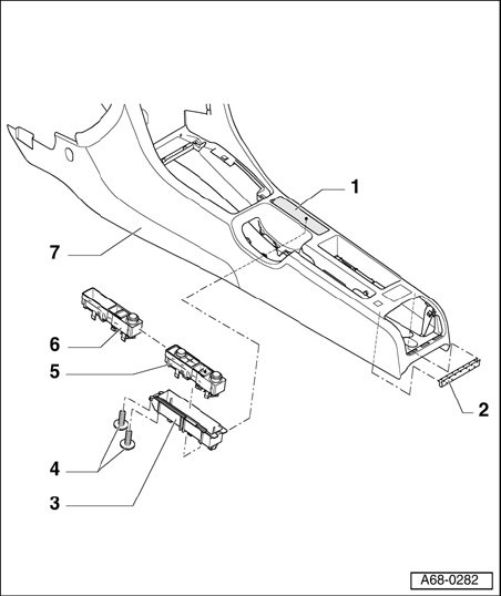 - Remove navigation system operating unit with cigarette lighter - 5 - or tray with cigarette lighter - 6 -.