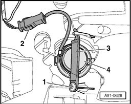 - Remove bolt - 1 - and remove retaining bracket - 3 - and additional speaker - 4 -.