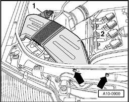 - Detach cover -1- on right of engine compartment.
