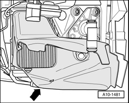 - Remove air duct on the left (arrow) in front of the auxiliary radiator.