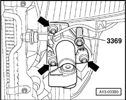- On vehicles with auxiliary heater, screw out bolts (arrows) for exhaust pipe of auxiliary/additional heater at noise insulation.
