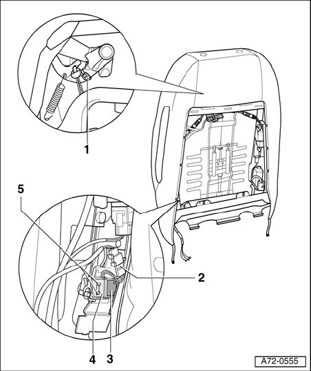NOTE: For vehicles up to 05.02, VIN: 8H 3K 002 450: To prevent malfunctions of headrest and seatback adjustment, apply a cable tie - 1 -.
