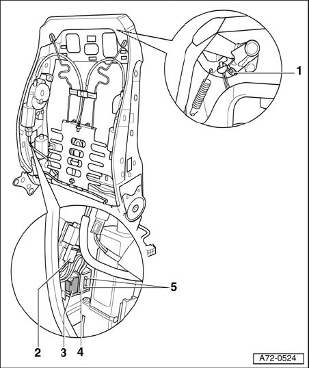 - Press together catches - 5 - (2x) and remove microswitch - 4 -.