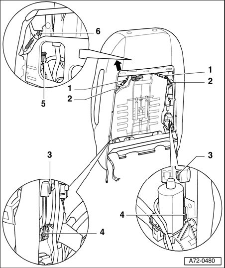 NOTE: For vehicles up to 05.02, VIN: 8H 3K 002 450: To prevent malfunctions of headrest and seatback adjustment, apply a cable tie - 7 -.