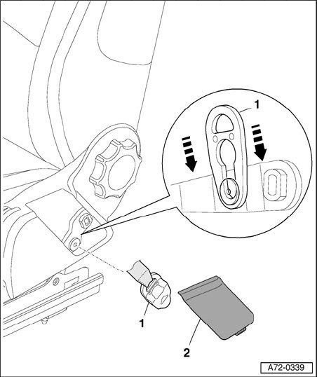 - Remove belt mount - 1 - pull down in direction of - arrow -.