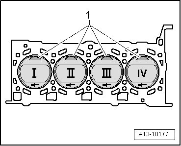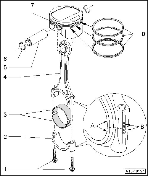 - Before removing, mark allocation of connecting rod and connecting rod bearing caps to each other and to cylinder with paint - arrow -.