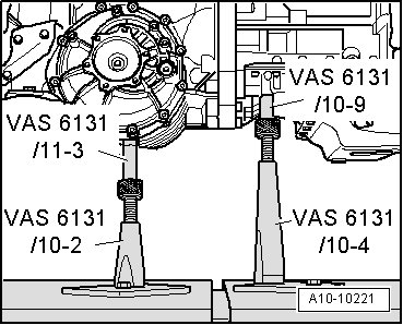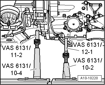 - Position subframe on both attachments (VAS 6131/10-8 ).